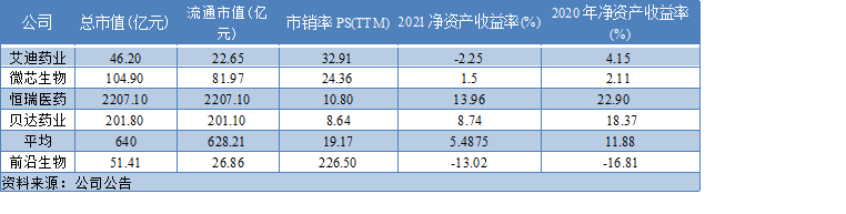 前沿生物為未盈利創(chuàng)新藥企業(yè),即使 2023 年公司收入達到 10 億級別,考慮到公司需要推進海外臨床試驗以及其他研發(fā)投入,預(yù)計僅能實現(xiàn)盈虧平衡。目前前沿生物的估值暫時不能加入盈利指標,而是選取了行業(yè)代表性的創(chuàng)新藥公司 PS 估值作為主要估值參考。