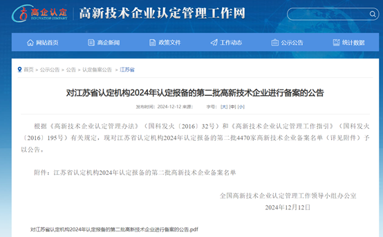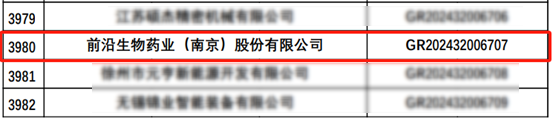 近日,全國高新技術(shù)企業(yè)認定管理工作領(lǐng)導小組辦公室發(fā)布了《對江蘇省認定機構(gòu)2024年認定報備的第二批高新技術(shù)企業(yè)進行備案公示》,前沿生物再次通過國家高新技術(shù)企業(yè)認定。